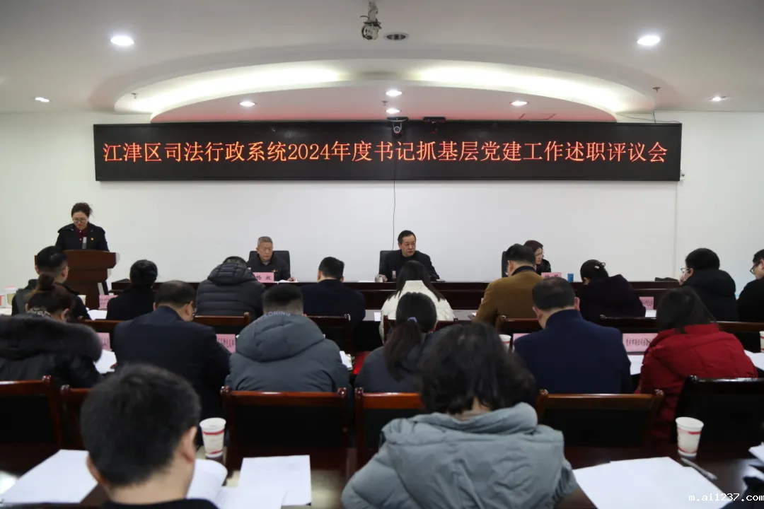 2025年2月18日,江津区司法局组织召开2024年度书记抓基层党建工作述职评议会。局党组书记、局长李杰,副局长、区律师行业党委书记钟艺,政治处主任、机关党委书记杨放以及机关党委和律师行业党委下属各支部书记、党员代表参加会议。