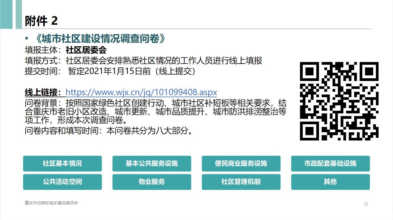 1.摸清基本情况。几江、鼎山、圣泉、德感、双福等各街道办事处对辖区内社区现状进行调查摸底,收集填报《绿色社区基础信息填报表》(附件1)、网上提交《城市社区建设情况调查问卷》(附件2)。并按照新老社区兼顾的原则,选择居民创建意愿强、积极性高、有工作基础的1个社区,申报创建示范绿色社区(附件3),于2021年1月12日前将附件1、2和3(附件2问卷提交完成截图)报送区住房城乡建委统一汇总(联系人:黄文韬,联系电话:18223266146,邮箱:302506022@qq.com)。区住房城乡建委在确定市级示范绿色社区后会同相关单位指导各街道做好示范创建工作。